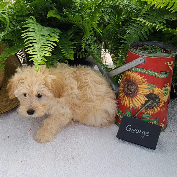 GEORGE HAS FOUND HIS FUREVER HOMEHe will be up to date on all his vaccinations at eight weeks of age. If you live in the Midwest, please check with us about meeting part-way. Airline or ground transportation is also available.
