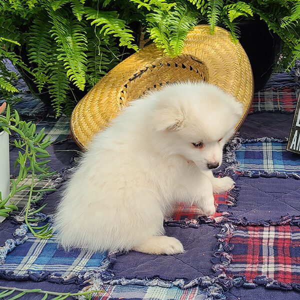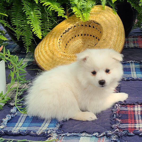 Beautiful mid-sized white dogs which make wonderful pets! They are generally 12-15 inches tall & weigh 12-20 pounds. Their ears point straight up as they listen to you! Eskimos are very loving & affectionate. If you are sitting on the couch, they will typically be that dog that will be resting their head on your lap. They generally train very easily-ranking among the top scores in obedience classes.Â