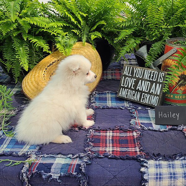 Hailey is an adorably cute girl ready to dazzle your life with her sweetness!! She is a purebred miniature-size American Eskimo who is fun-loving and smart making her easy to train. Haileyi is registered with the American Pet Registry and will be up to date on all her vaccinations at eight weeks of age. She receives lots of love and attention from us & our three children!! She is just what you need to enjoy the lovely Springtime with!! If you live in the Midwest, please check with us about meeting part-way for a small fee. Airline or ground transportation is also available.