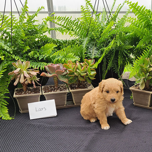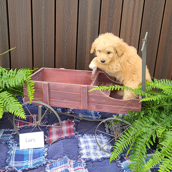 Lars is such an adorable roly-poly guy ready to dazzle your life!! His dad is a miniature Poodle & his mom is a miniature American Eskimo-two of the best breeds making him the perfect pet/companion for you!! Lars loves any & all attention he receives & is happiest when playing with our three children!! He is up to date on all his vaccinations. If you live in the Midwest, please check with us about meeting part-way for a small fee.