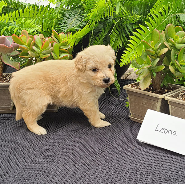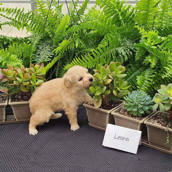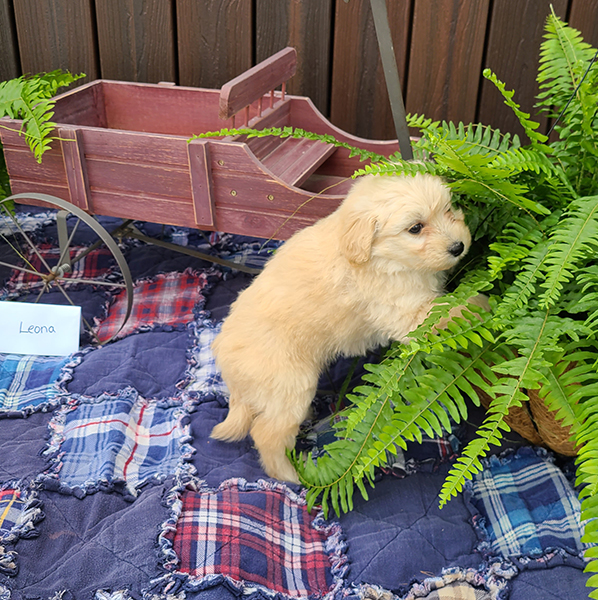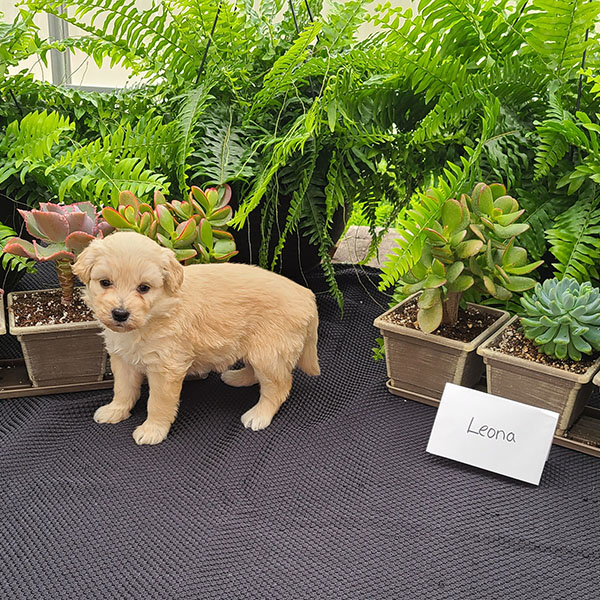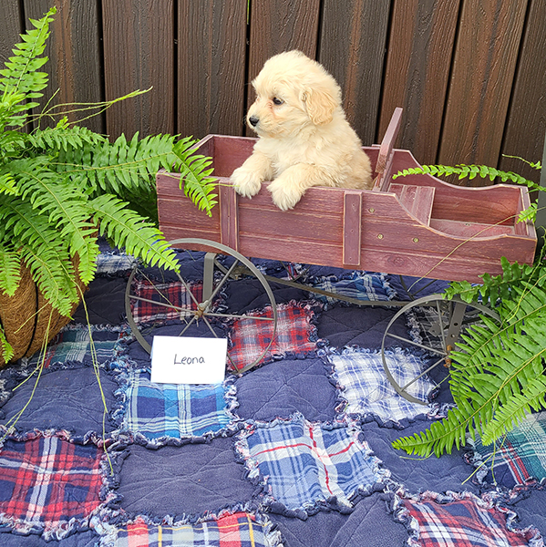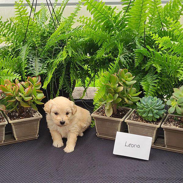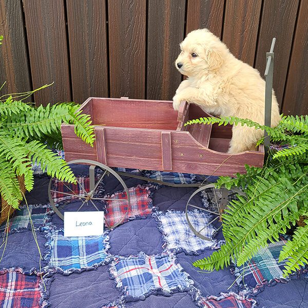 Leona is such an adorable roly-poly girl ready to dazzle your life!! Her dad is a miniature Poodle & her mom is a miniature American Eskimo-two of the best breeds making him the perfect pet/companion for you!! Leona loves any & all attention she receives & is happiest when playing with our three children!! She is up to date on all her vaccinations. If you live in the Midwest, please check with us about meeting part-way for a small fee.