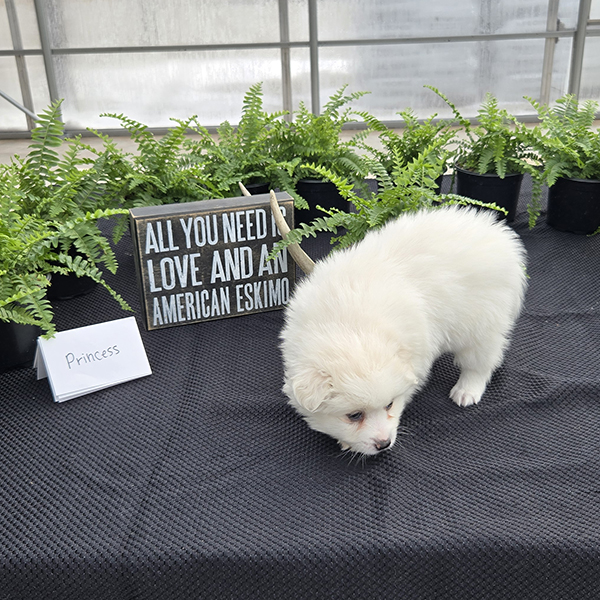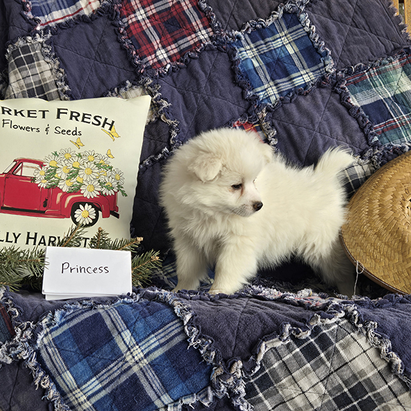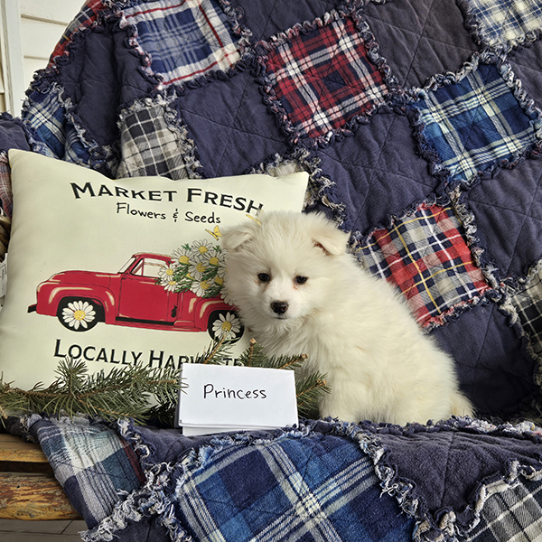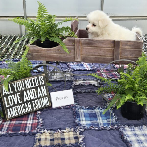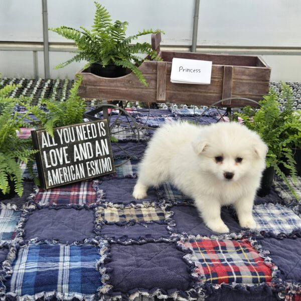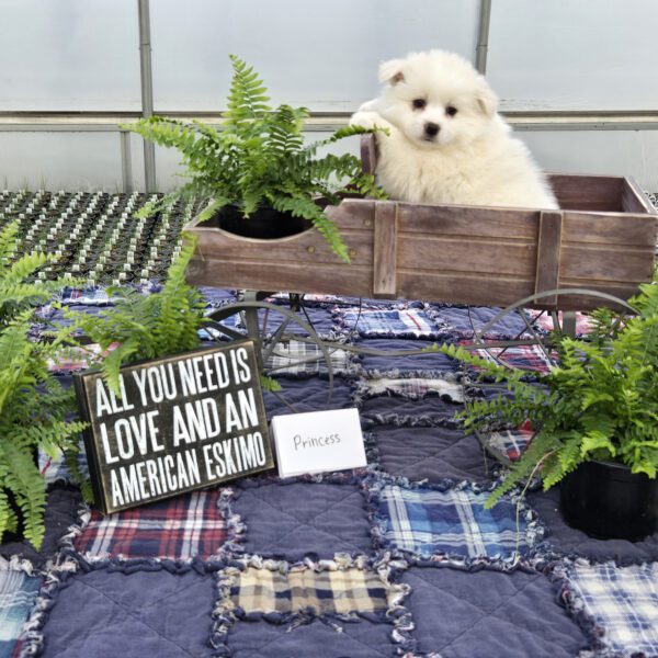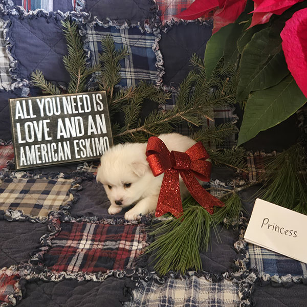 Princess is an adorably cute girl ready to dazzle your life with her sweetness!! She is a purebred miniature-size American Eskimo who is fun-loving and smart making her easy to train. Princess is registered with the American Pet Registry and will be up to date on all her vaccinations at eight weeks of age. She receives lots of love and attention from us & our three children!! She is just what you need for that special gift!! If you live in the Midwest, please check with us about meeting part-way for a small fee. Airline or ground transportation is also available.