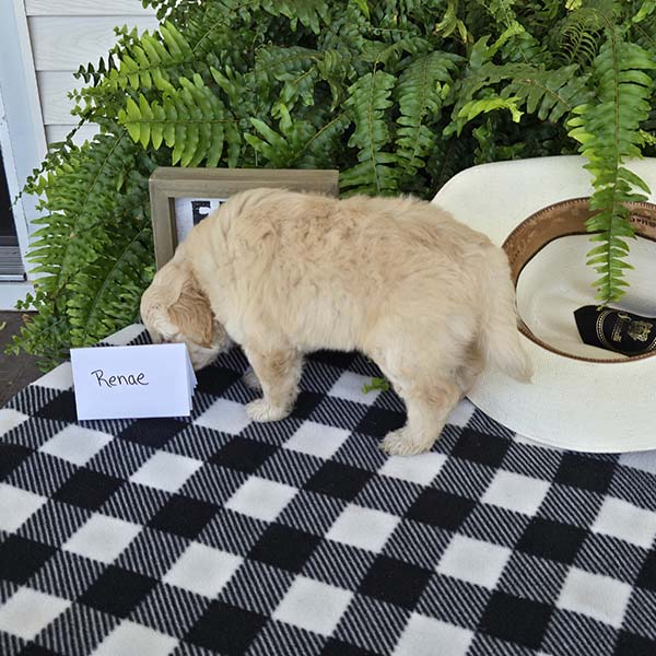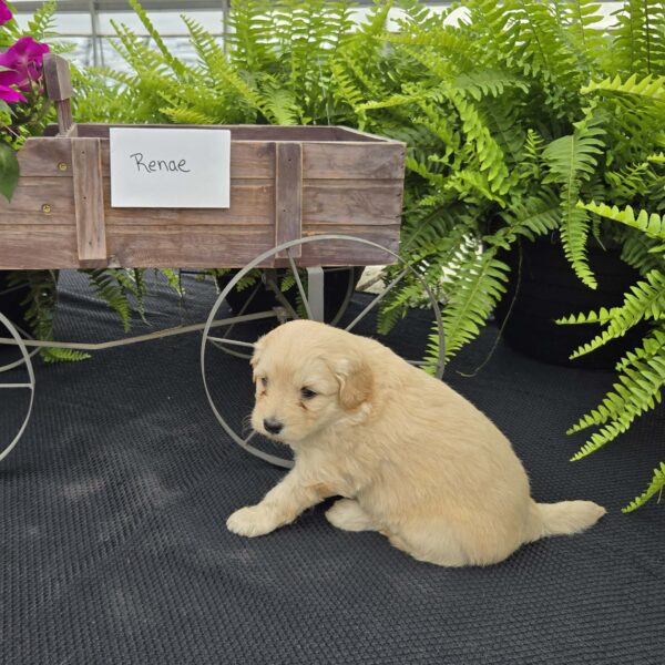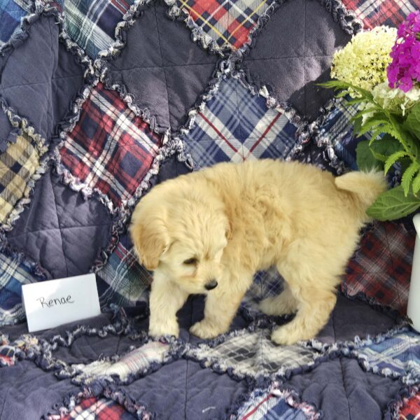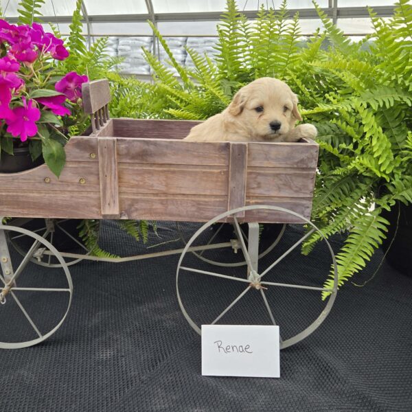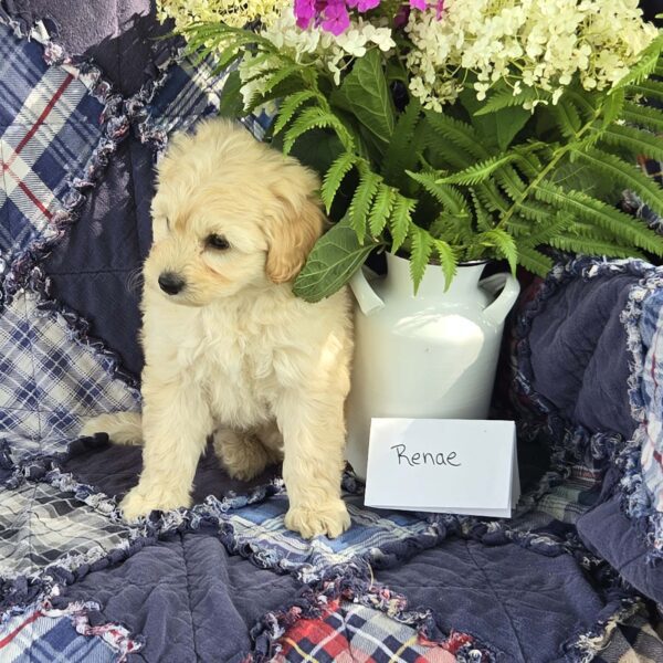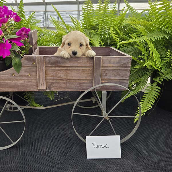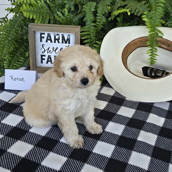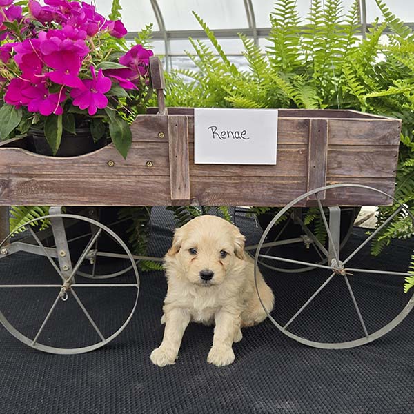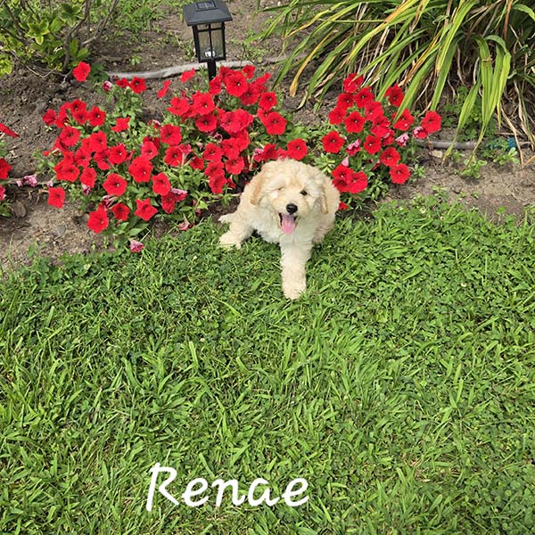 Renae is such an adorable roly-poly girl ready to dazzle your life!! Her dad is a miniature Poodle & her mom is a miniature American Eskimo-two of the best breeds making her the perfect pet/companion for you!! Renae loves any & all attention she receives & is happiest when playing with our three children!! She is up to date on all her vaccinations. If you live in the Midwest, please check with us about meeting part-way for a small fee.
