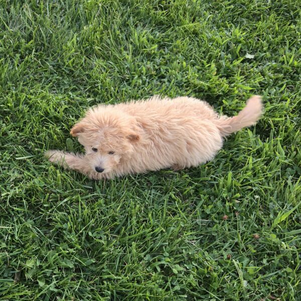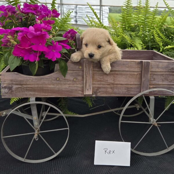 Rex is such an adorable roly-poly guy ready to dazzle your life!! His dad is a miniature Poodle & his mom is a miniature American Eskimo-two of the best breeds making him the perfect pet/companion for you!! Rex loves any & all attention he receives & is happiest when playing with our three children!! He is up to date on all his vaccinations. If you live in the Midwest, please check with us about meeting part-way for a small fee.