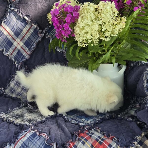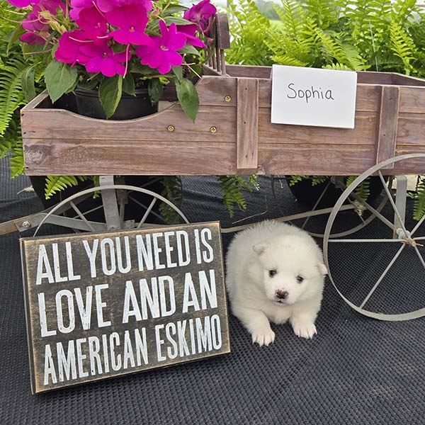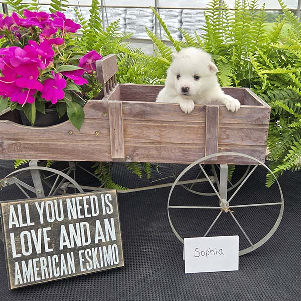 Our goal is to provide healthy companion pets that will give and receive love for many happy years. For more information about purchasing Sophia or other American Eskimo puppies send Quiet Meadow Puppies a message on the available now button!