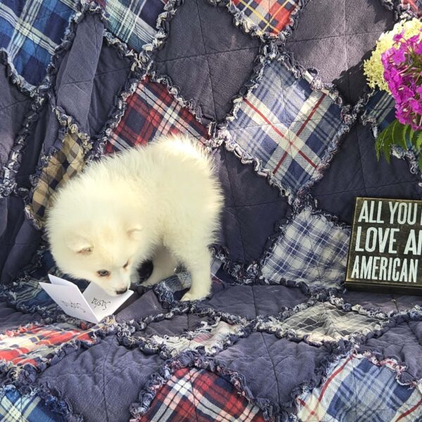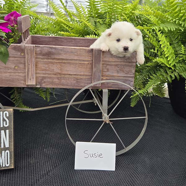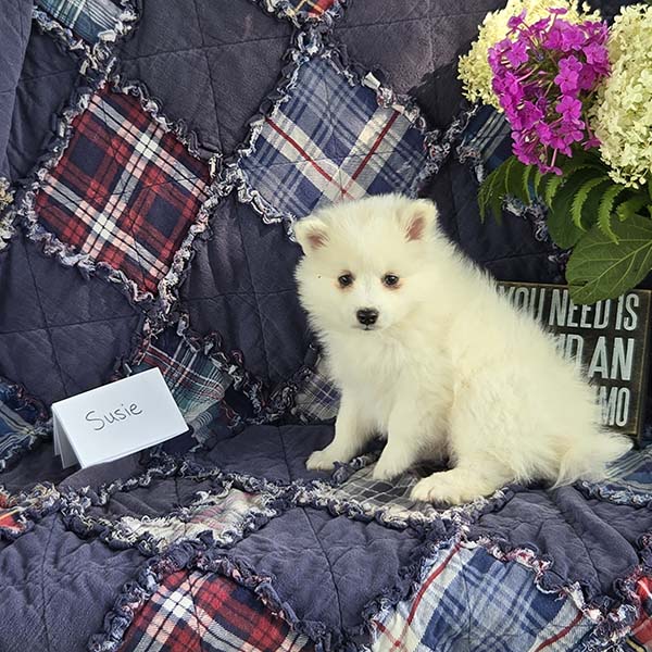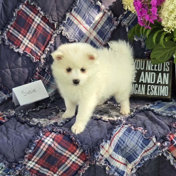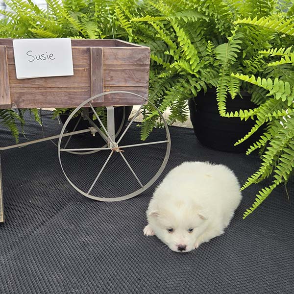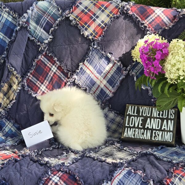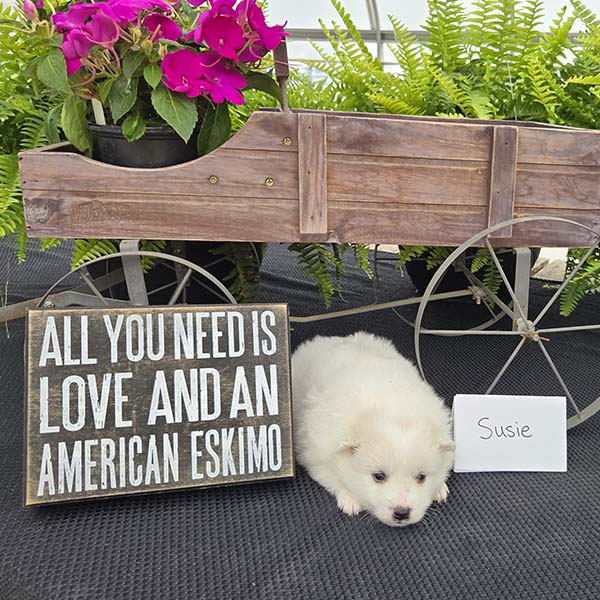 Our goal is to provide healthy companion pets that will give and receive love for many happy years. For more information about purchasing Susie or other American Eskimo puppies send Quiet Meadow Puppies a message on the available now button!
