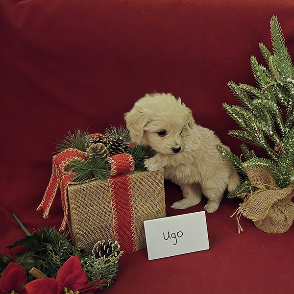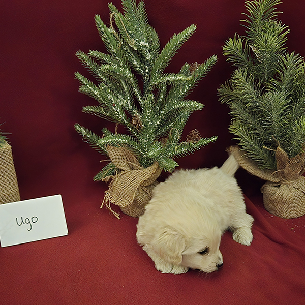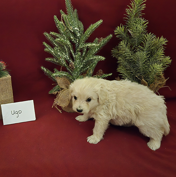 Ugo is such an adorable roly-poly guy ready to dazzle your life!! His dad is a miniature Poodle & his mom is a miniature American Eskimo-two of the best breeds making him the perfect pet/companion for you!! Ugo loves any & all attention he receives & is happiest when playing with our three children!! He is up to date on all his vaccinations. If you live in the Midwest, please check with us about meeting part-way for a small fee.