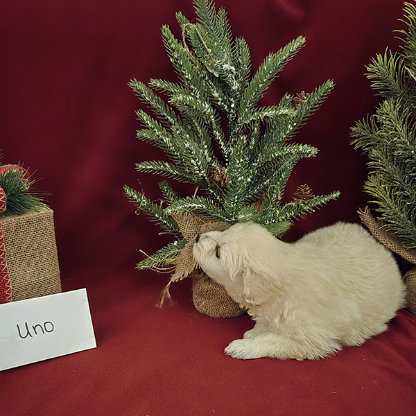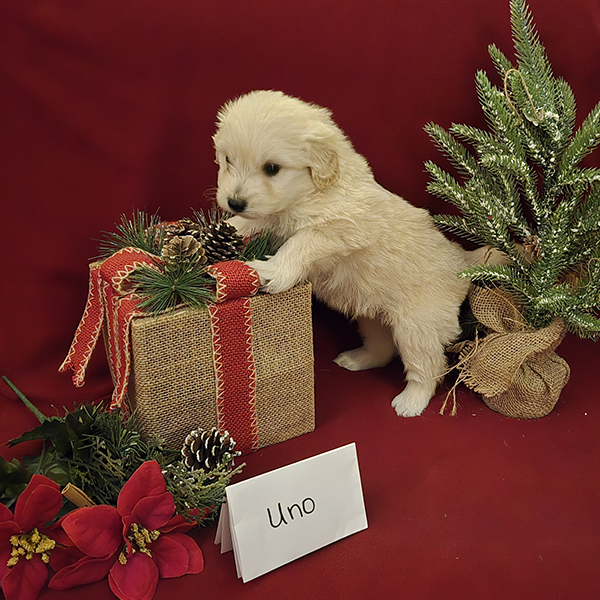 Uno is such an adorable roly-poly guy ready to dazzle your life!! His dad is a miniature Poodle & his mom is a miniature American Eskimo-two of the best breeds making him the perfect pet/companion for you!! Uno loves any & all attention he receives & is happiest when playing with our three children!! He is up to date on all his vaccinations. If you live in the Midwest, please check with us about meeting part-way for a small fee.