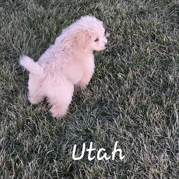 Utah is such an adorable roly-poly guy ready to dazzle your life!! His dad is a miniature Poodle & his mom is a miniature American Eskimo-two of the best breeds making him the perfect pet/companion for you!! Utah loves any & all attention he receives & is happiest when playing with our three children!! He is up to date on all his vaccinations. If you live in the Midwest, please check with us about meeting part-way for a small fee.