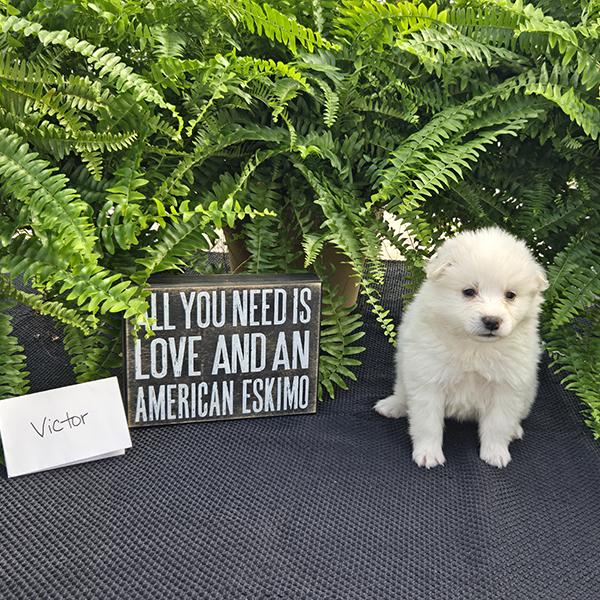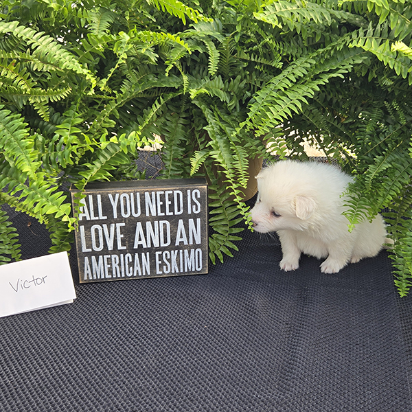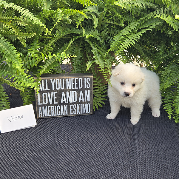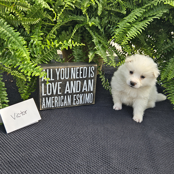 Victor is a handsome roly-poly guy full of sweetness & fun!! He is a purebred miniature American Eskimo who is fun-loving and smart making him easy to train. Victor loves to romp & play with his siblings & soaks up all the attention he gets from our three young children! He is just what you need for that special gift!! If you live in the Midwest, please check with us about meeting part-way for a small fee. Airline or ground transportation is also available.