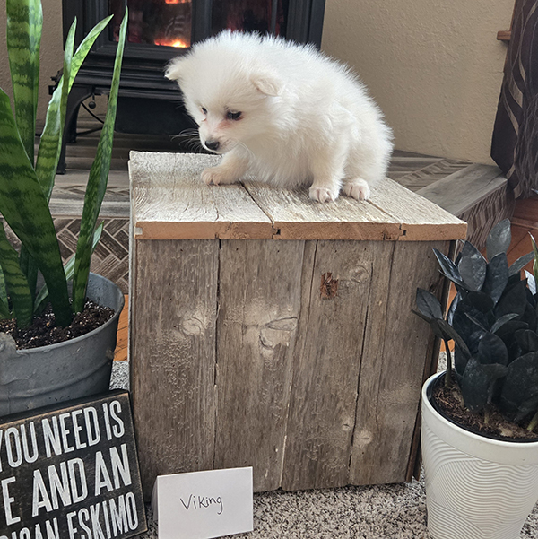 Viking is a handsome roly-poly guy full of sweetness & fun!! He is a purebred miniature American Eskimo who is fun-loving and smart making him easy to train. Viking loves to romp & play with his siblings & soaks up all the attention he gets from our three young children! He is just what you need for that special gift!! If you live in the Midwest, please check with us about meeting part-way for a small fee. Airline or ground transportation is also available.