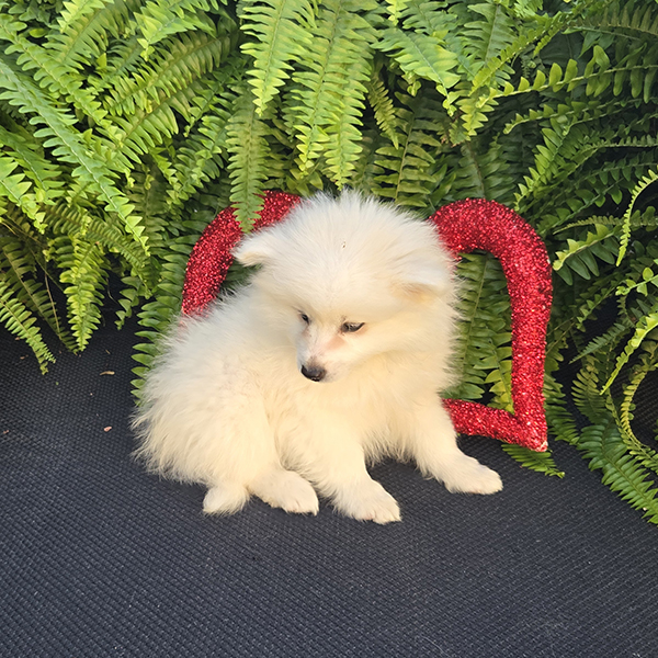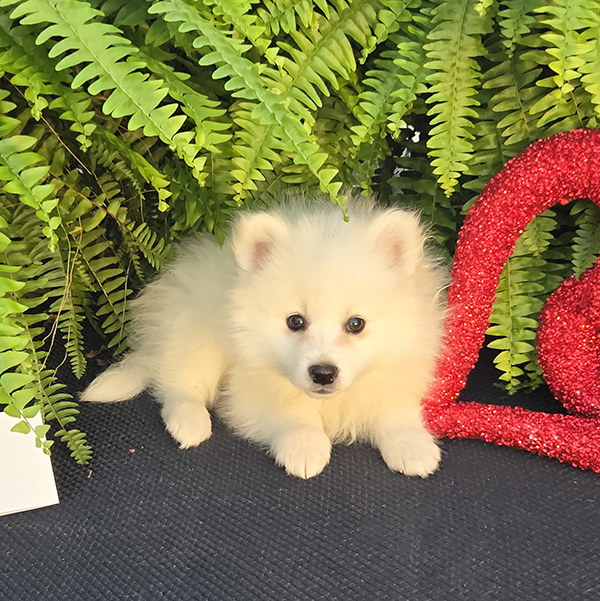 Beautiful mid-sized white dogs which make wonderful pets! They are generally 12-15 inches tall & weigh 12-20 pounds. Their ears point straight up as they listen to you! Eskimos are very loving & affectionate. If you are sitting on the couch, they will typically be that dog that will be resting their head on your lap. They generally train very easily-ranking among the top scores in obedience classes.Â