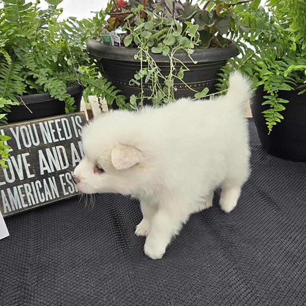 Our goal is to provide healthy companion pets that will give and receive love for many happy years. For more information about purchasing Susie or other American Eskimo puppies send Quiet Meadow Puppies a message on the available now button!