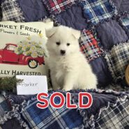 Beautiful mid-sized white dogs which make wonderful pets! They are generally 12-15 inches tall & weigh 12-20 pounds. Their ears point straight up as they listen to you! Eskimos are very loving & affectionate.  If you are sitting on the couch,  they will typically be that dog that will be resting their head on your lap. They generally train very easily-ranking among the top scores in obedience classes.